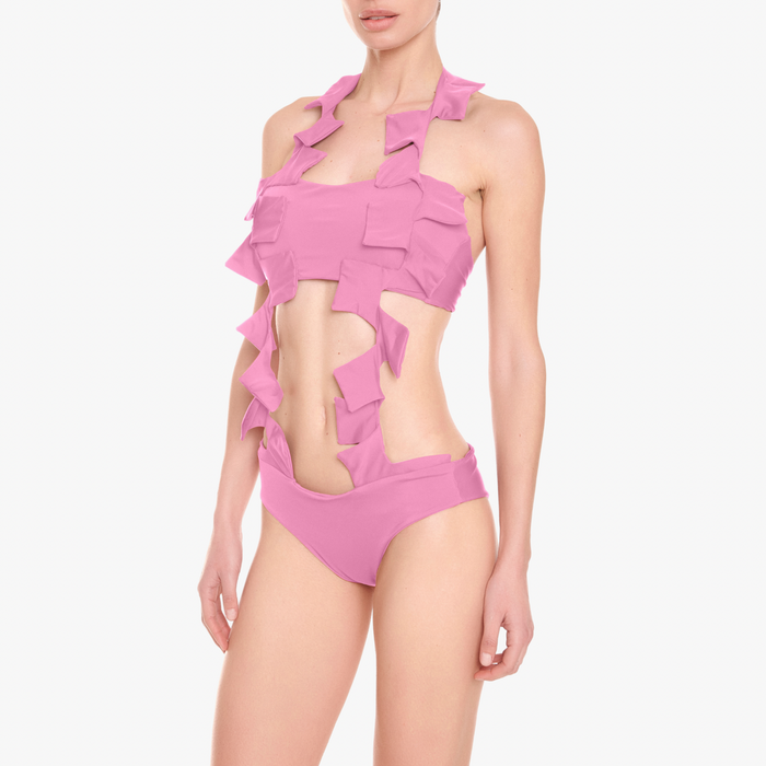 Made in house, on demand, using eco-certified Italian fabrics, every piece begins as regenerated nylon yarn, recovered from ocean waste, industrial remnants, and discarded textiles. These high-performance materials are reimagined into silk-smooth, UV-protective textiles that offer exceptional shape retention, support, and comfort.
