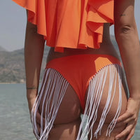 A statement of sophistication, the Indrio set is designed for those who embrace the sun-drenched elegance of summer. Crafted with a soft off-shoulder top that flows gracefully, paired with bikini bottoms that offer a playful fringe accent, this set embodies carefree luxury. Made with high-quality, breathable fabric, Indrio is perfect for days by the water and evenings of spontaneous beachside dining.